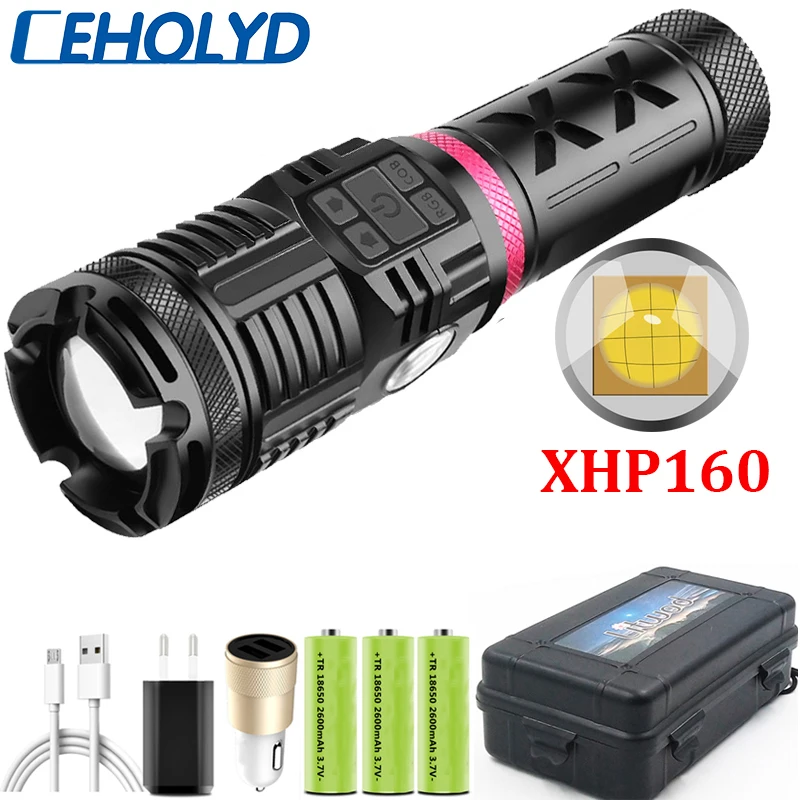Product Name: CEHOLYD XHP160 Led Linterna 4 Colores De Alta Calidad Recargable USB Powerbank 500000 Linterna De Lumen De Aluminio Linterna Con Zoom