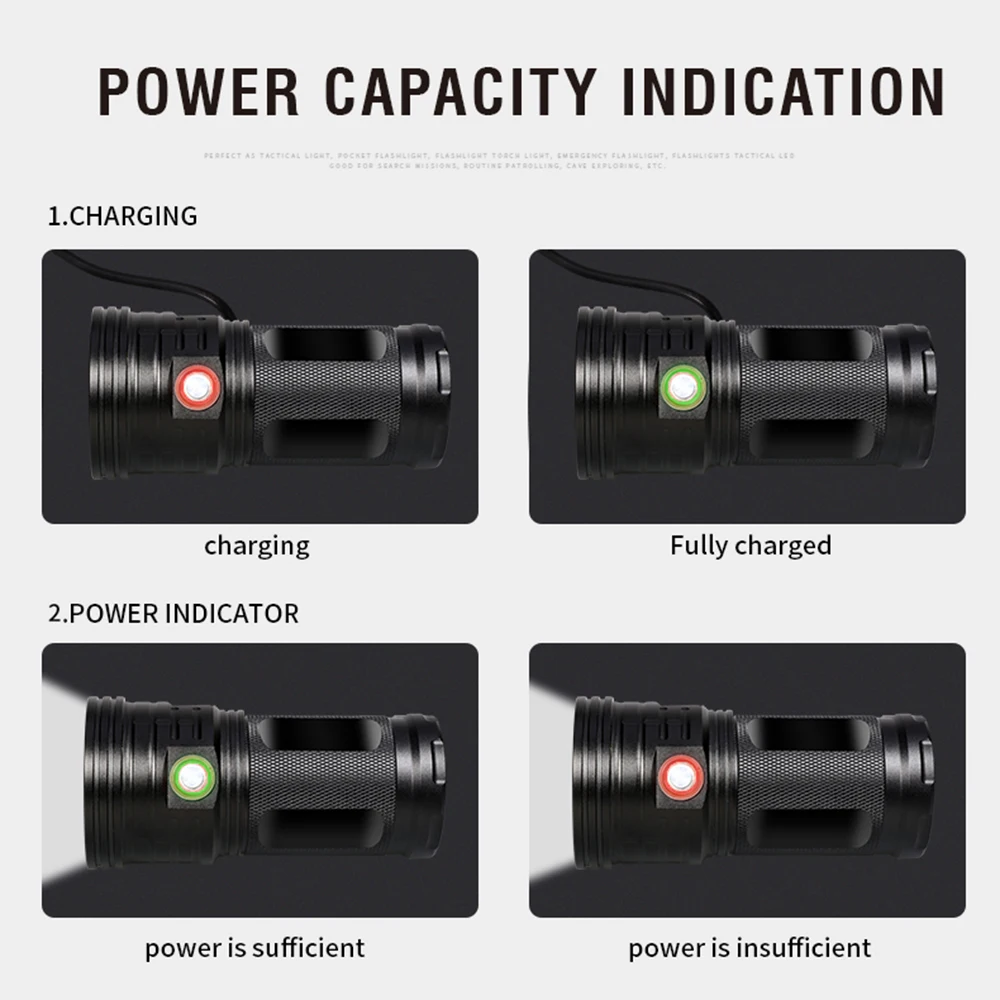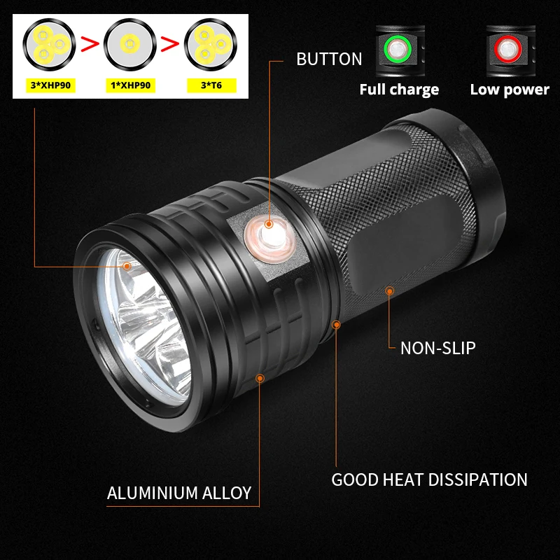 Product Name: Xlámpara LED Reflector Ultra Potente T6 Linterna XHP90 Linterna USB De Carga Portátil Banco De Energía Luz Por 18650