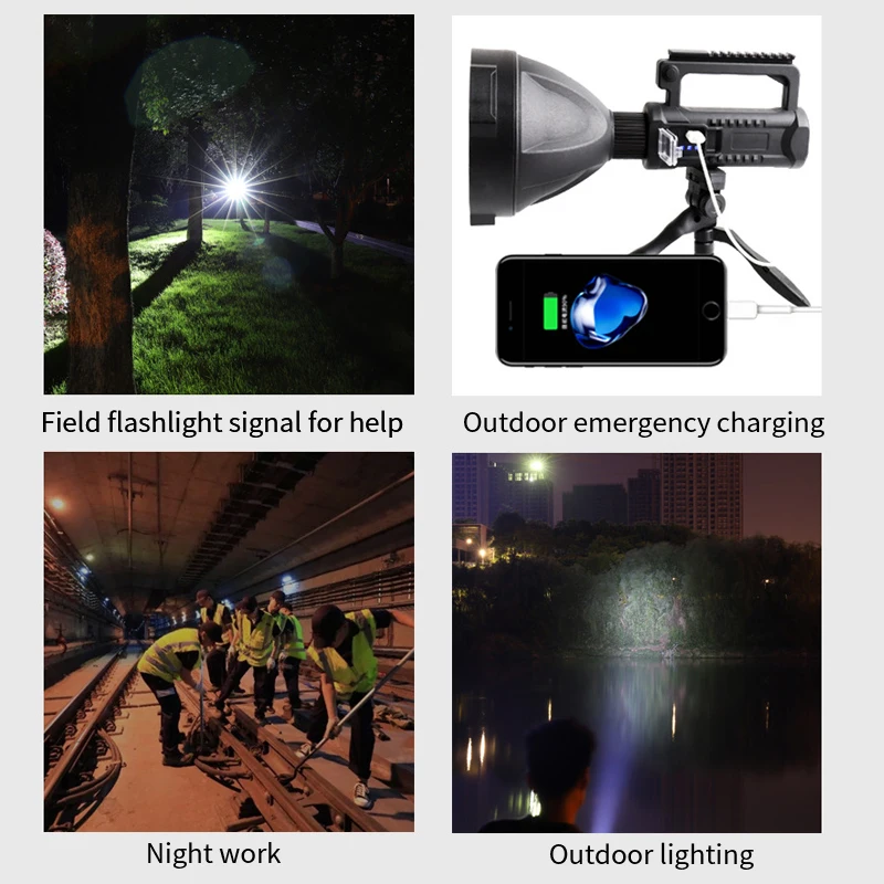 Product Name: TRLIFE-linterna LED De Largo Alcance, Reflector Portátil Con Soporte, USB, 7200mAh, Superbrillante, XHP70.2/XHP50