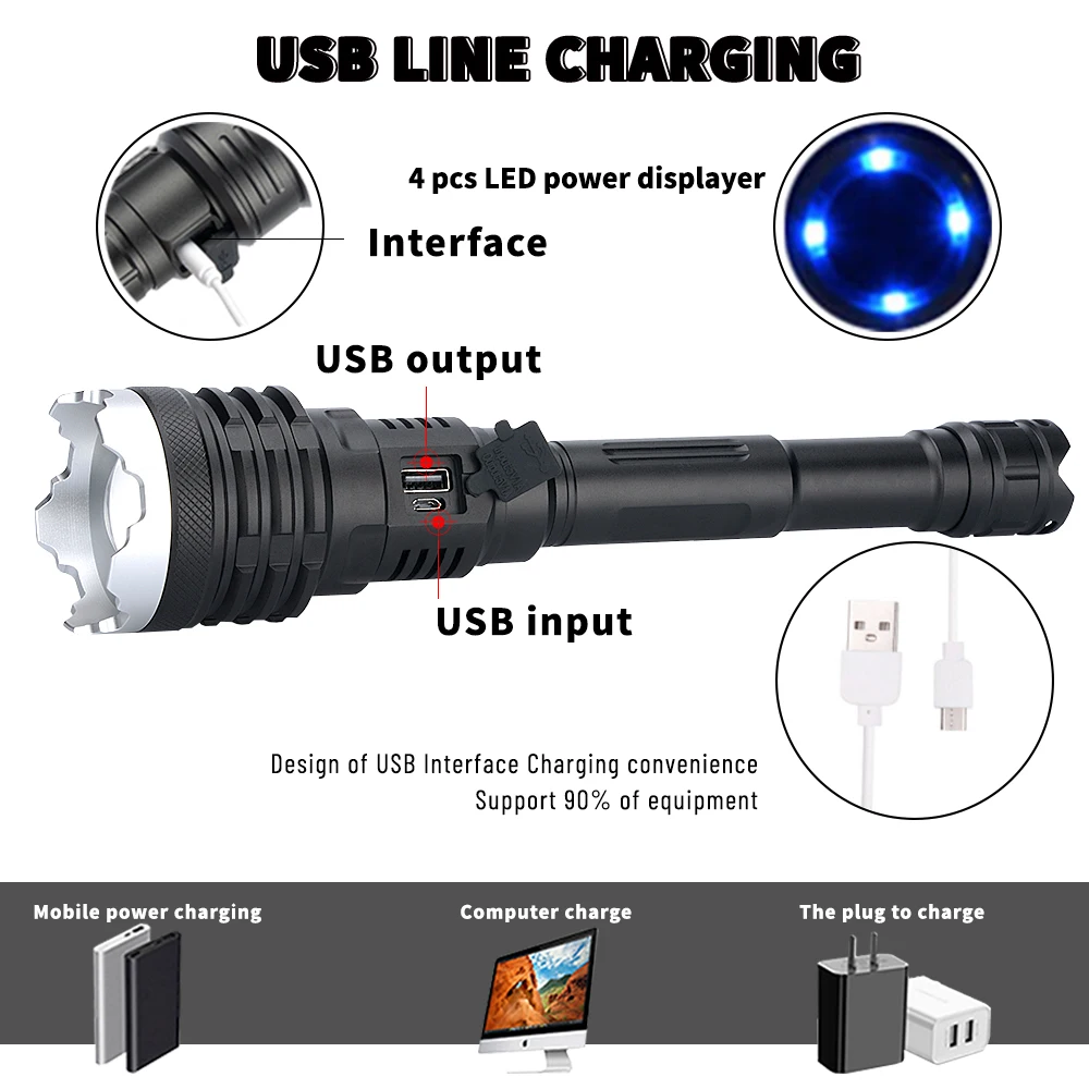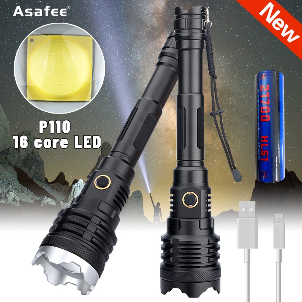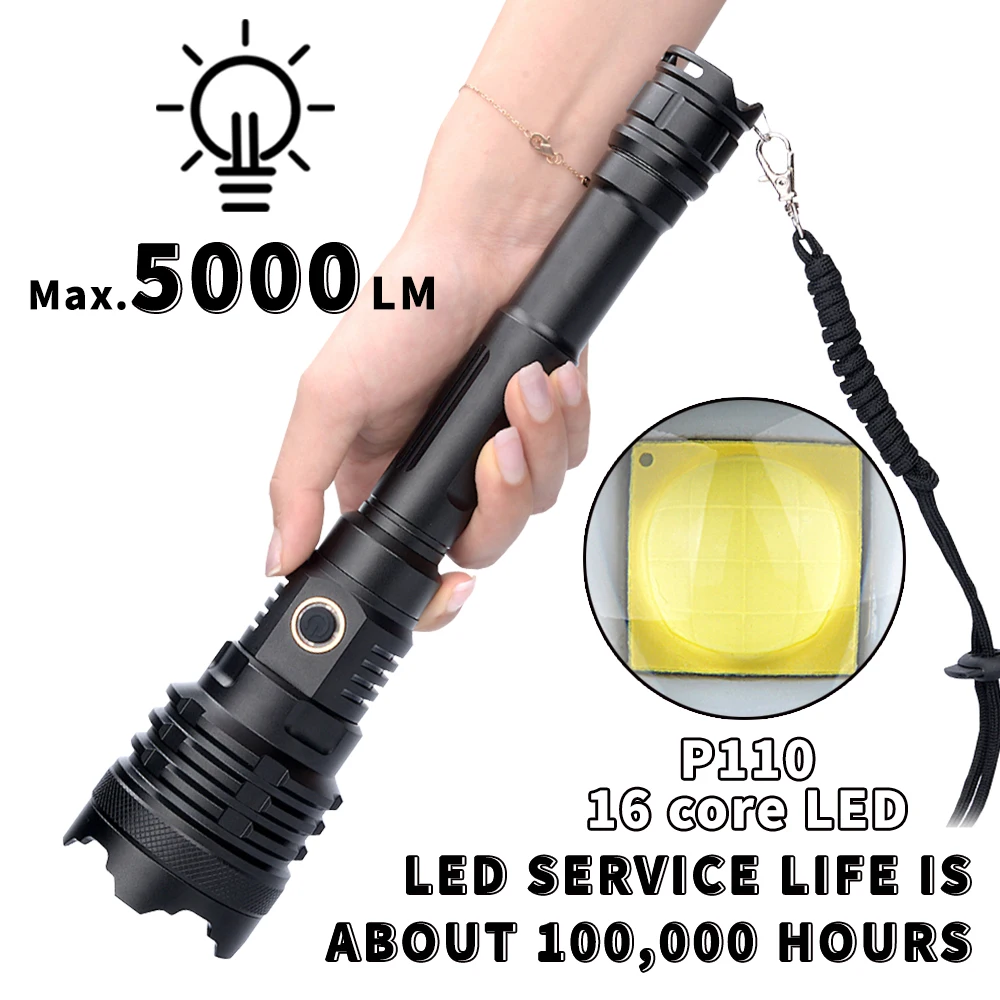Product Name: XHP110-potente Linterna LED Recargable Por USB, Linterna De Batería De 5000LM, 21700, Resistente Al Agua, Linterna Táctica Con Zoom