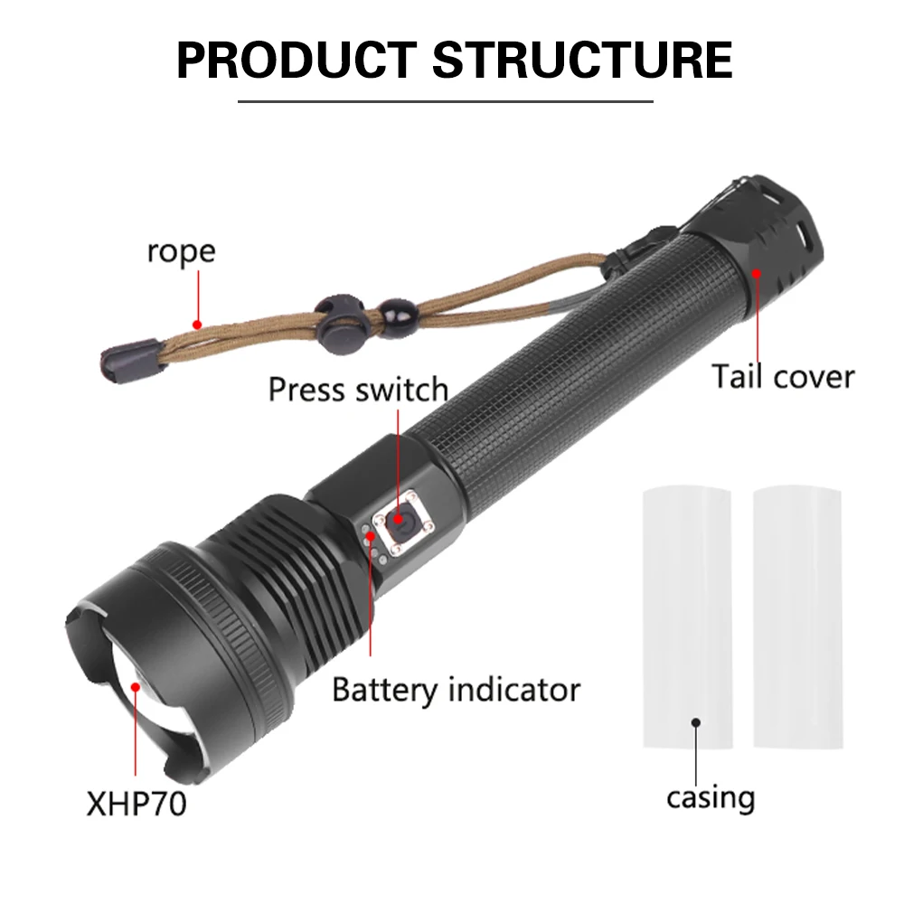 Product Name: Asafee Alta Potencia XHP70 Linterna Led Recargable Zoom USB Antorcha Lámpara 18650 26650 Camping Linterna Táctica