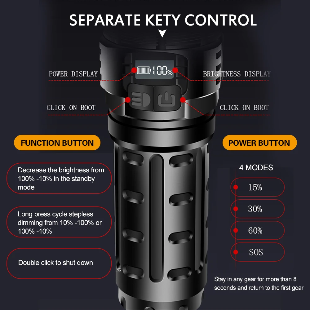 Product Name: XHP70-Lámpara LED Con Zoom Para Caza, Linterna XHP90 Con Carga USB, Para Acampar Y Cazar