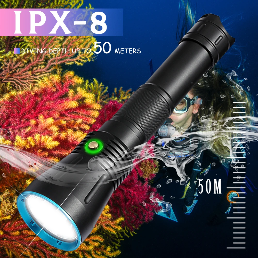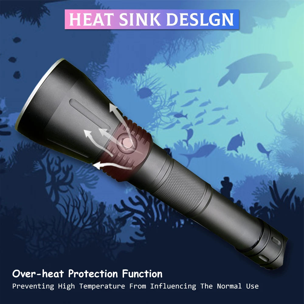 Product Name: Linterna De Buceo XHP70, Potente Linterna LED SST70 De 3600LM, Luz De Buceo Profesional Alimentada Por Batería De 26650