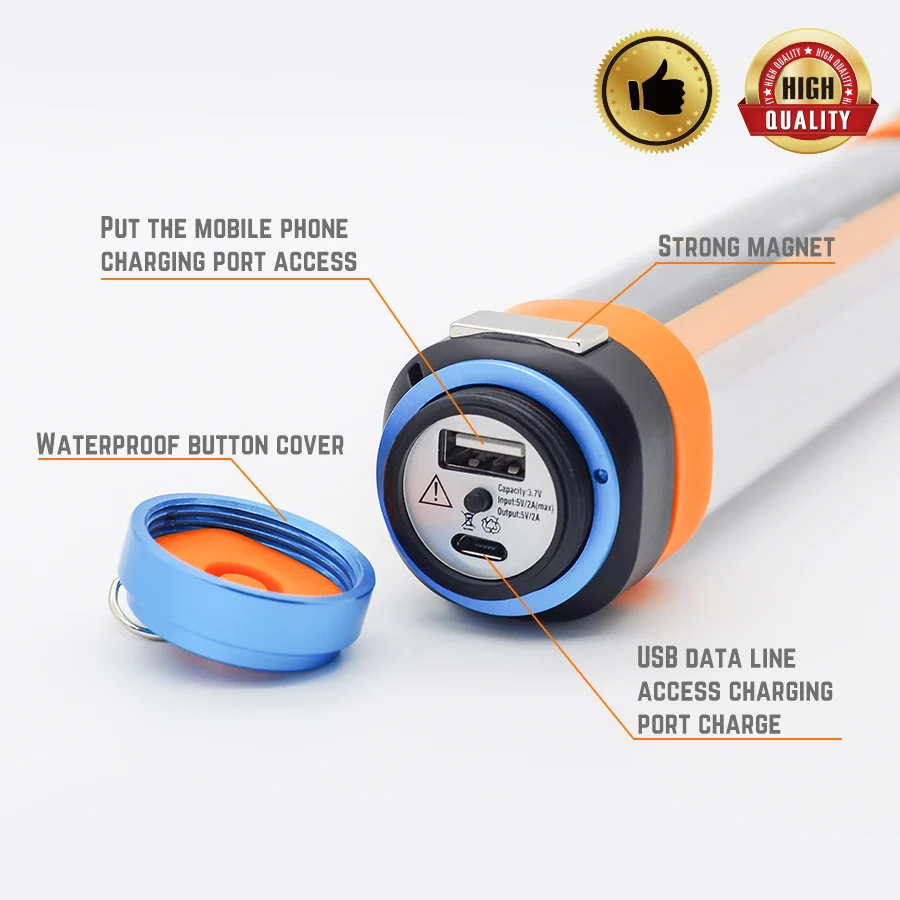 Product Name: Linterna Táctica Magnética Recargable, Powerbank, Luz De Camping, Resistente Al Agua, Multifunción, Luz Antimosquitos, Palo De Lobo