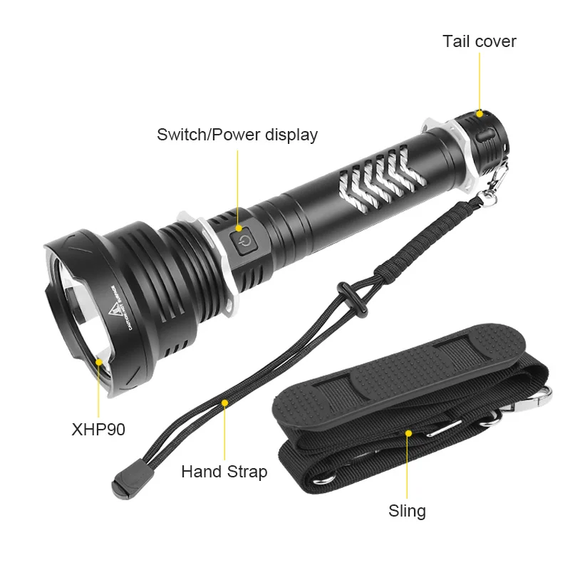 Product Name: XHP90-linterna LED Potente, Linterna Táctica Usb, Lámpara De Camping De Emergencia, Luz De Mano Con Batería De 18650 O 26650